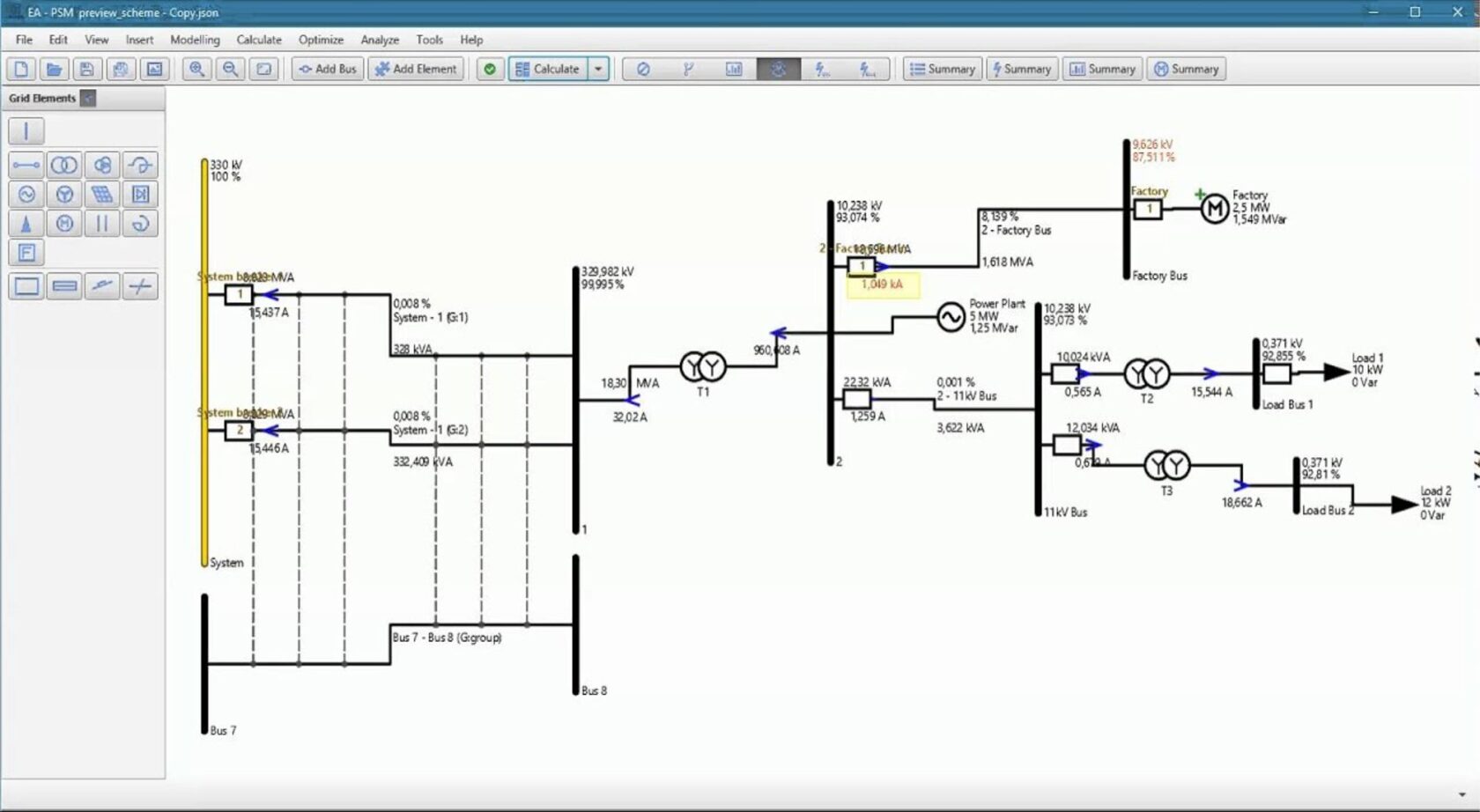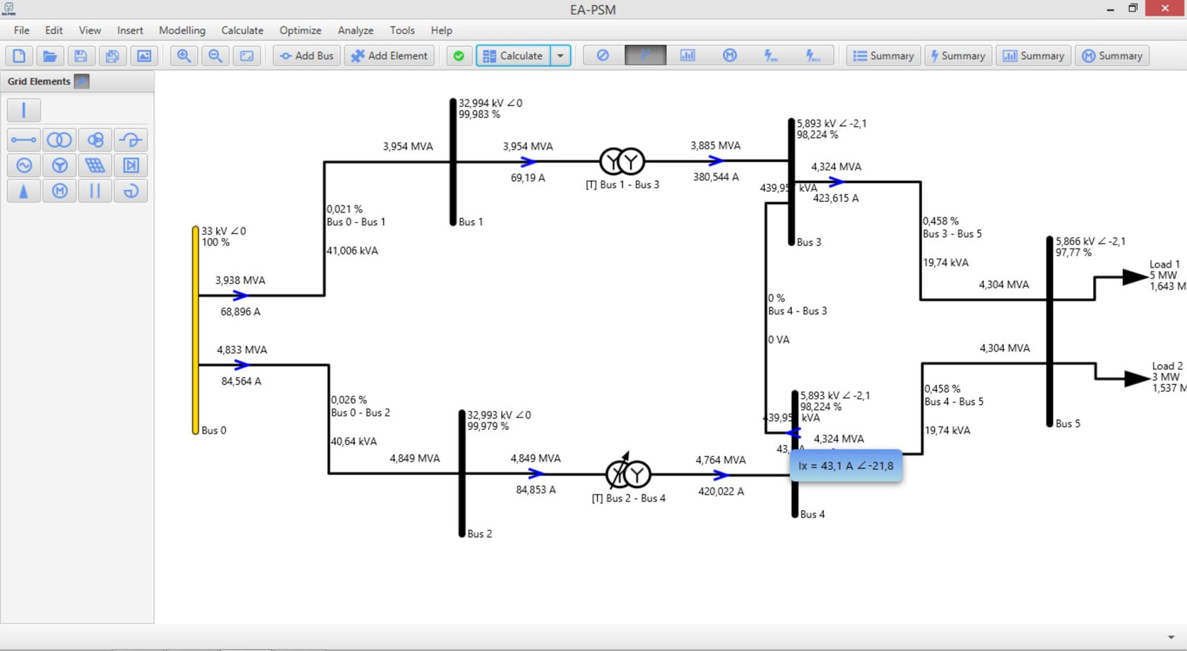 For the calculation and modeling of distribution and transmission power grids of companies, as well as for selecting RAA settings, we use the EA-PSM Electric software.